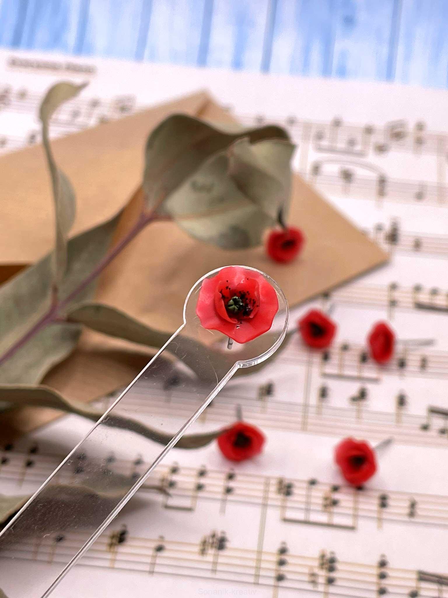 Každý květ je ručně modelovaný z poloprůsvitného polymeru, díky kterému působí lehce a křehce — stejně jako opravdové vlčí máky ve větru.