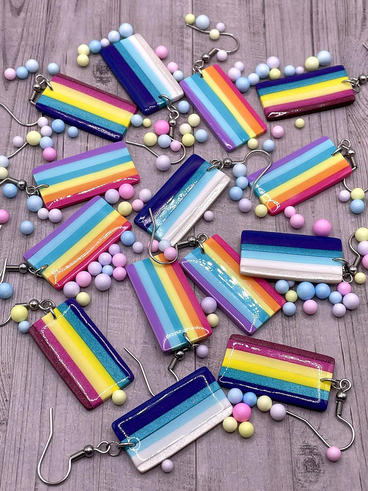 Veselé duhové náušnice vyrobeno z polymerové hmoty, zalito křyšťálovou pryskyřicí.