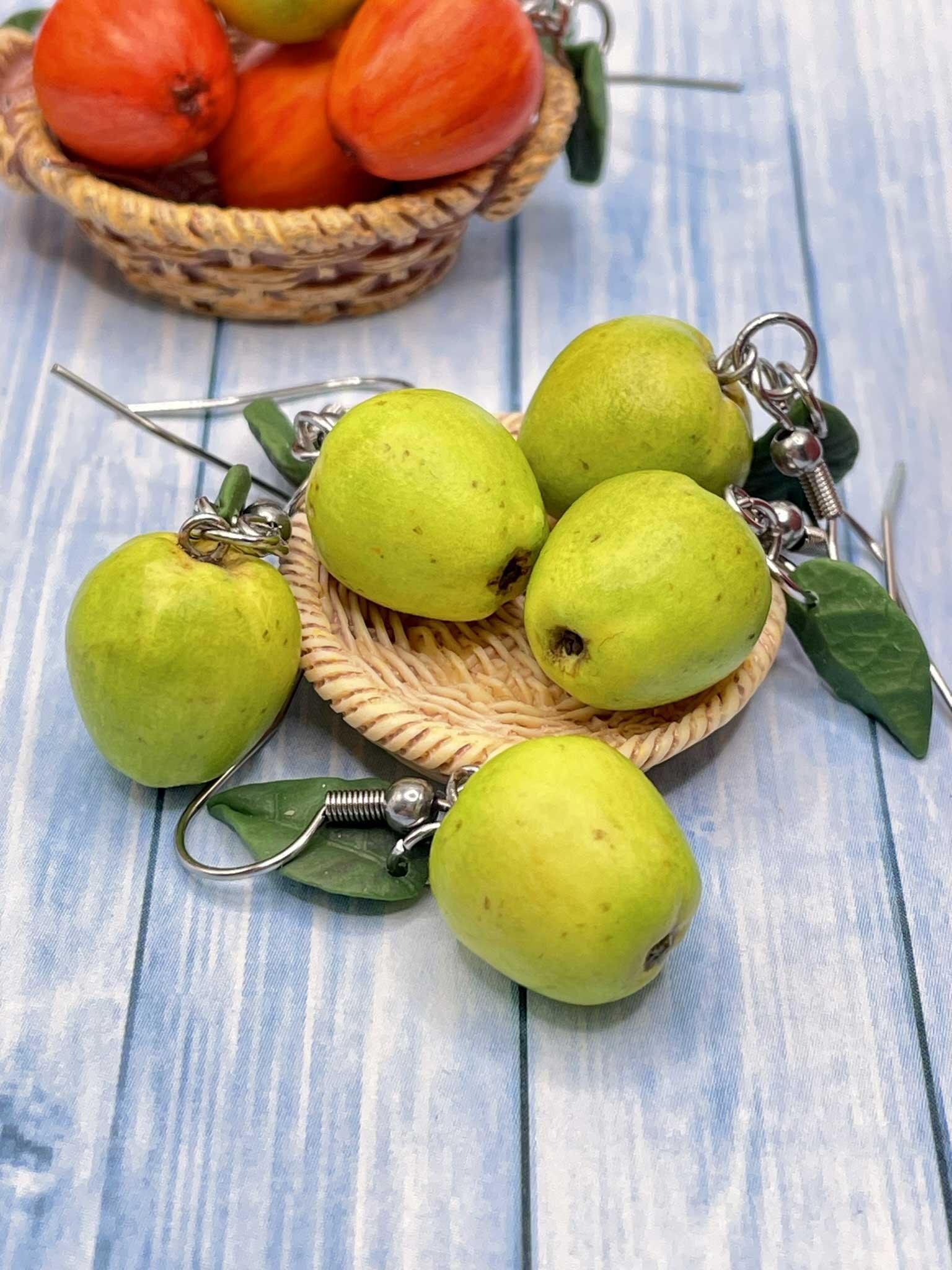 Každý kousek je ručně vymodelovaný z polymerové hmoty, malovaný v odstínech zelené a doplněný o drobný lístek, který dodává jablkům živý a autentický výraz.