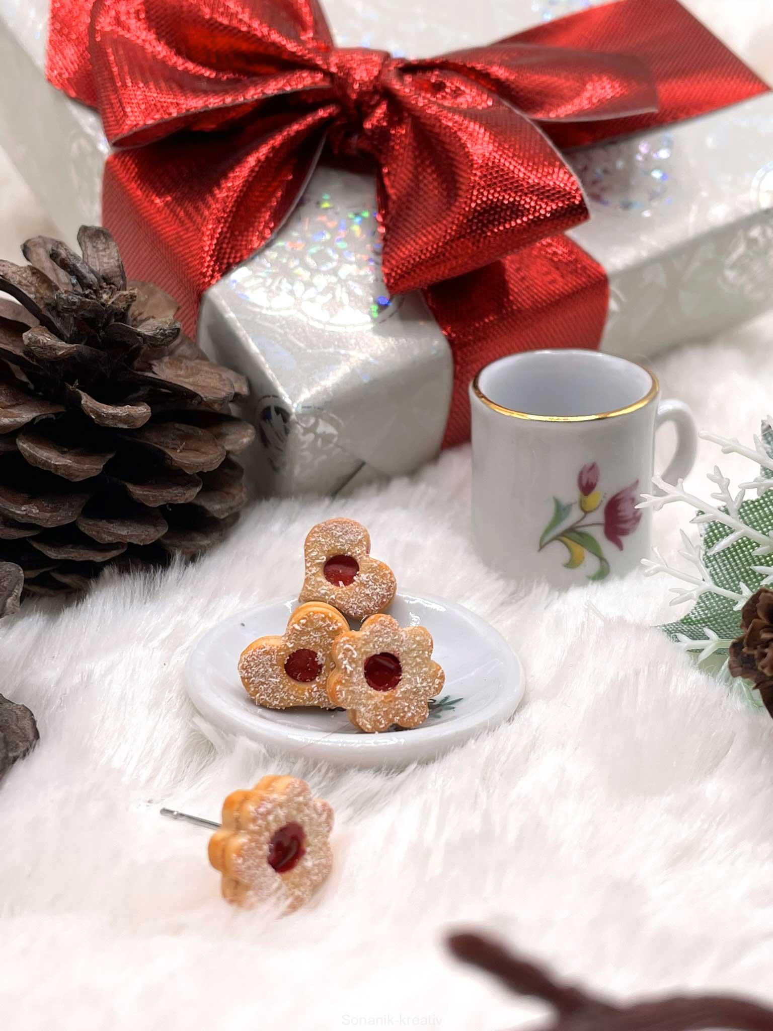 Sladký detail, který nikdy neomrzí. Napichovací náušnice ve tvaru kytky nebo srdíčka z lineckého s jahodovou marmeládou a decentním posypem cukru jsou pečlivě ručně vymodelované z polymerové hmoty. Ideální dárek pro milovníky tradičního cukroví – nebo jen pro radost sobě.