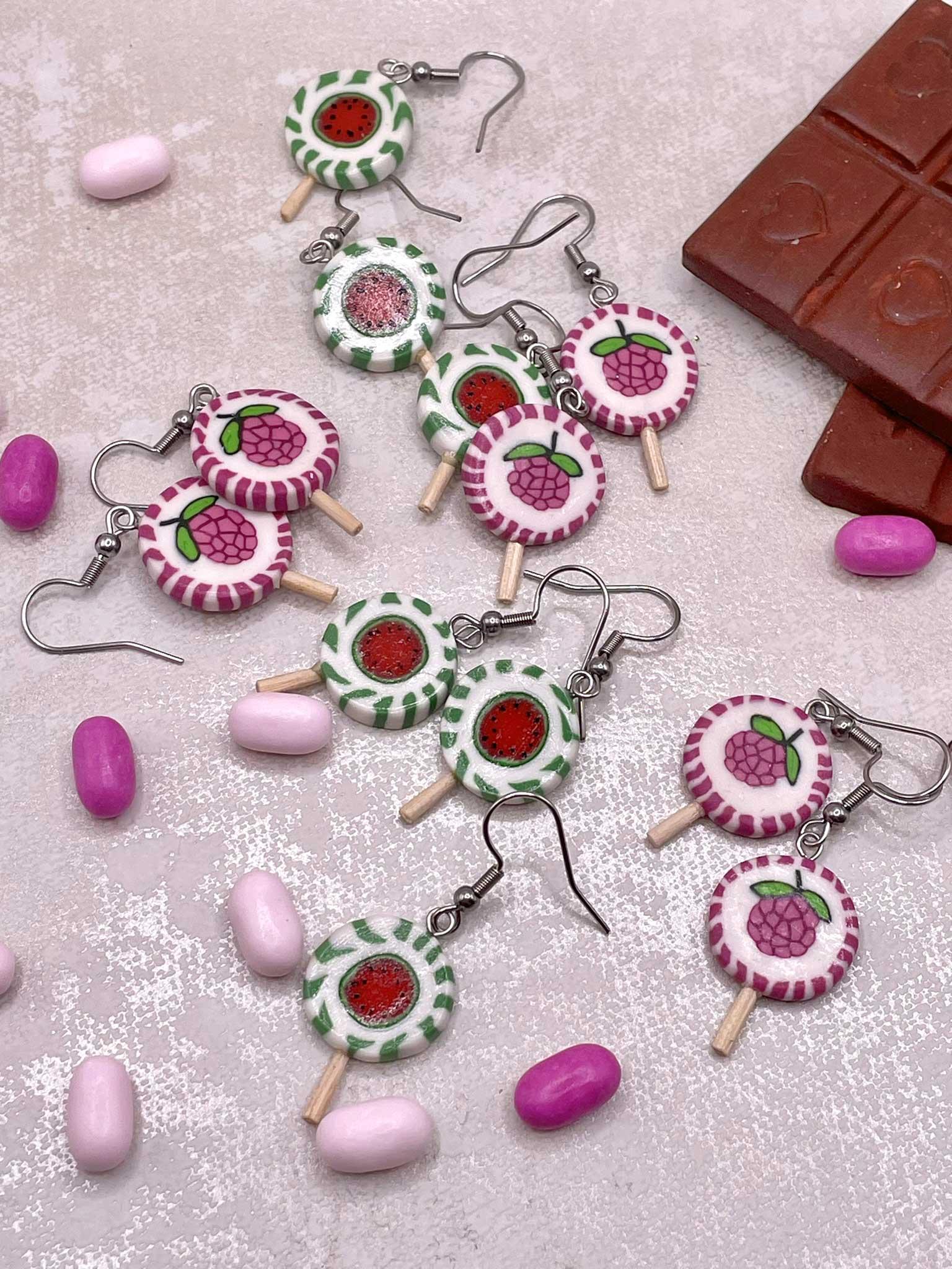 Hravé visací náušničky, které připomínají sladké poklady z dětství. Jsou pečlivě vymodelované z polymerové hmoty a doplněné o malý dřevěný klacík, takže působí opravdu realisticky. Díky veselým barvám přinesou špetku nostalgie a sladký úsměv do každého dne. Ideální pro ty, kdo se nebojí hravých doplňků.