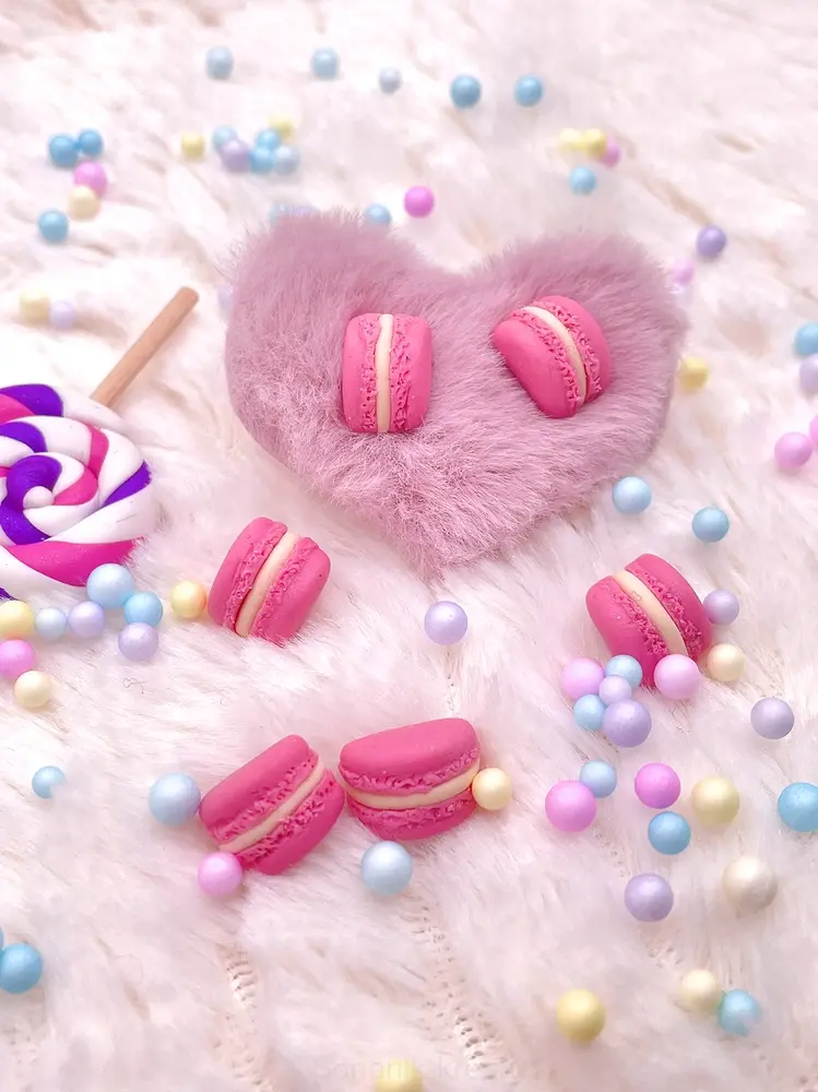 Veselé náušnice jahodové makronky vymodelované z polymerové hmoty. Napichovací nerez náušnice, vhodné i pro alergiky.