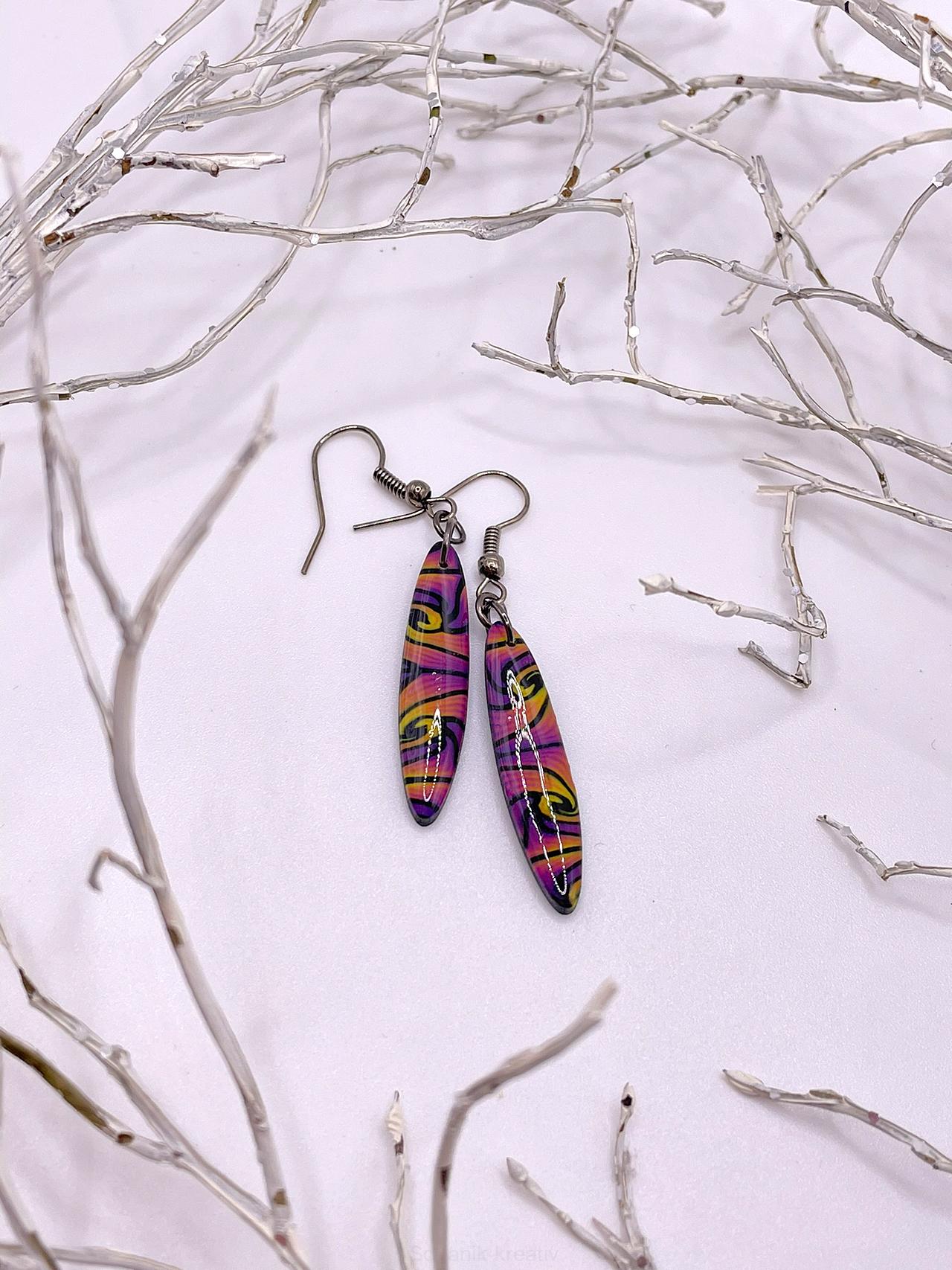 Náušnice z polymerové hmoty, zalité pryskyřicí.