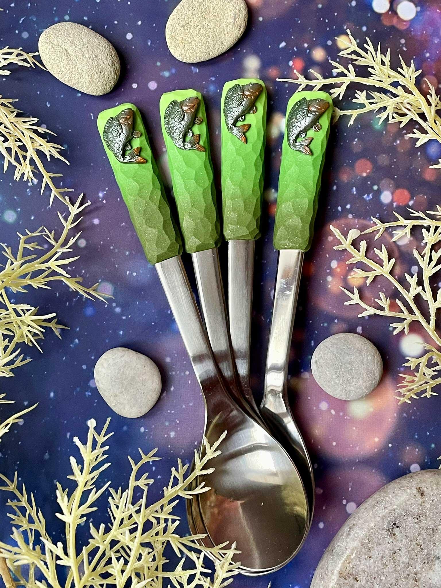 Originální lžička, která udělá radost každému správnému rybáři. Rukojeť zdobí ručně vymodelovaný kapr, pečlivě domalovaný a zvýrazněný metalickým pudrem, aby vynikl každý detail šupin i ploutví. Každý kus vzniká ručně, a tak je stejně jedinečný jako váš úlovek.