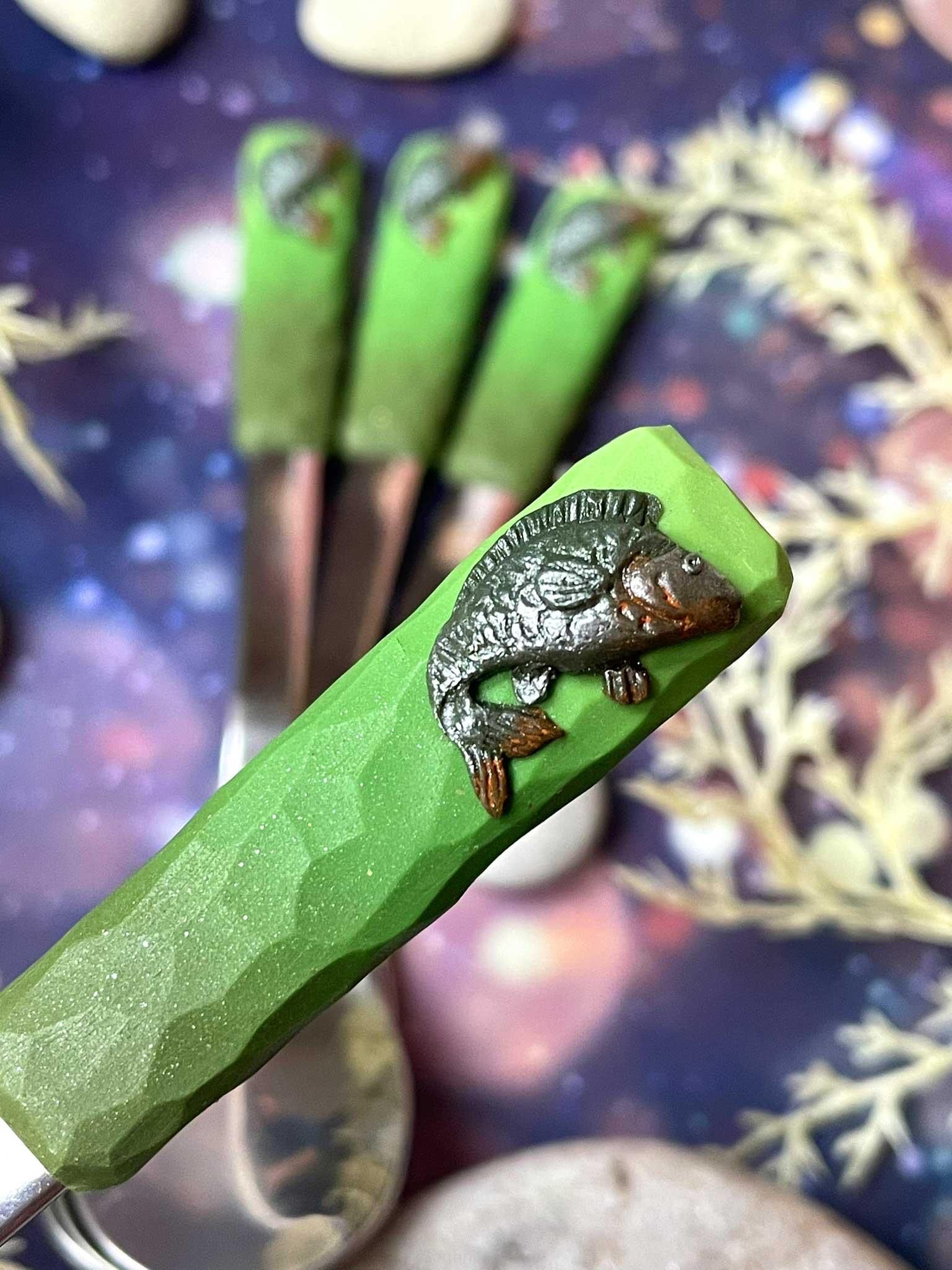 Originální lžička, která udělá radost každému správnému rybáři. Rukojeť zdobí ručně vymodelovaný kapr, pečlivě domalovaný a zvýrazněný metalickým pudrem, aby vynikl každý detail šupin i ploutví. Každý kus vzniká ručně, a tak je stejně jedinečný jako váš úlovek.