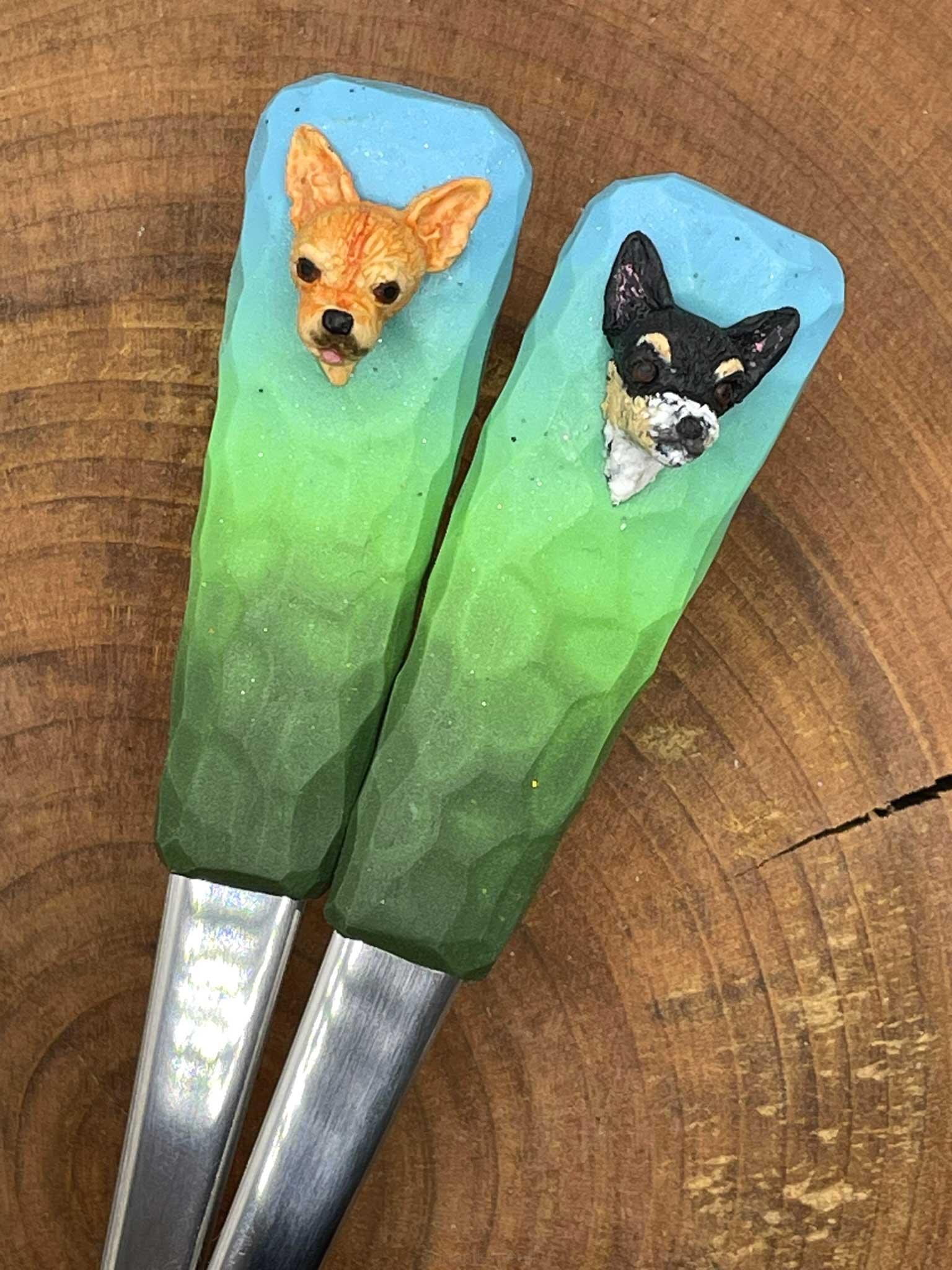 Tato nerezová lžička zdobená polymerovou hmotou s hlavičkou pejska je víc než jen obyčejný kousek nádobí – je to malé umělecké dílo, které vám zpříjemní každé ráno.
