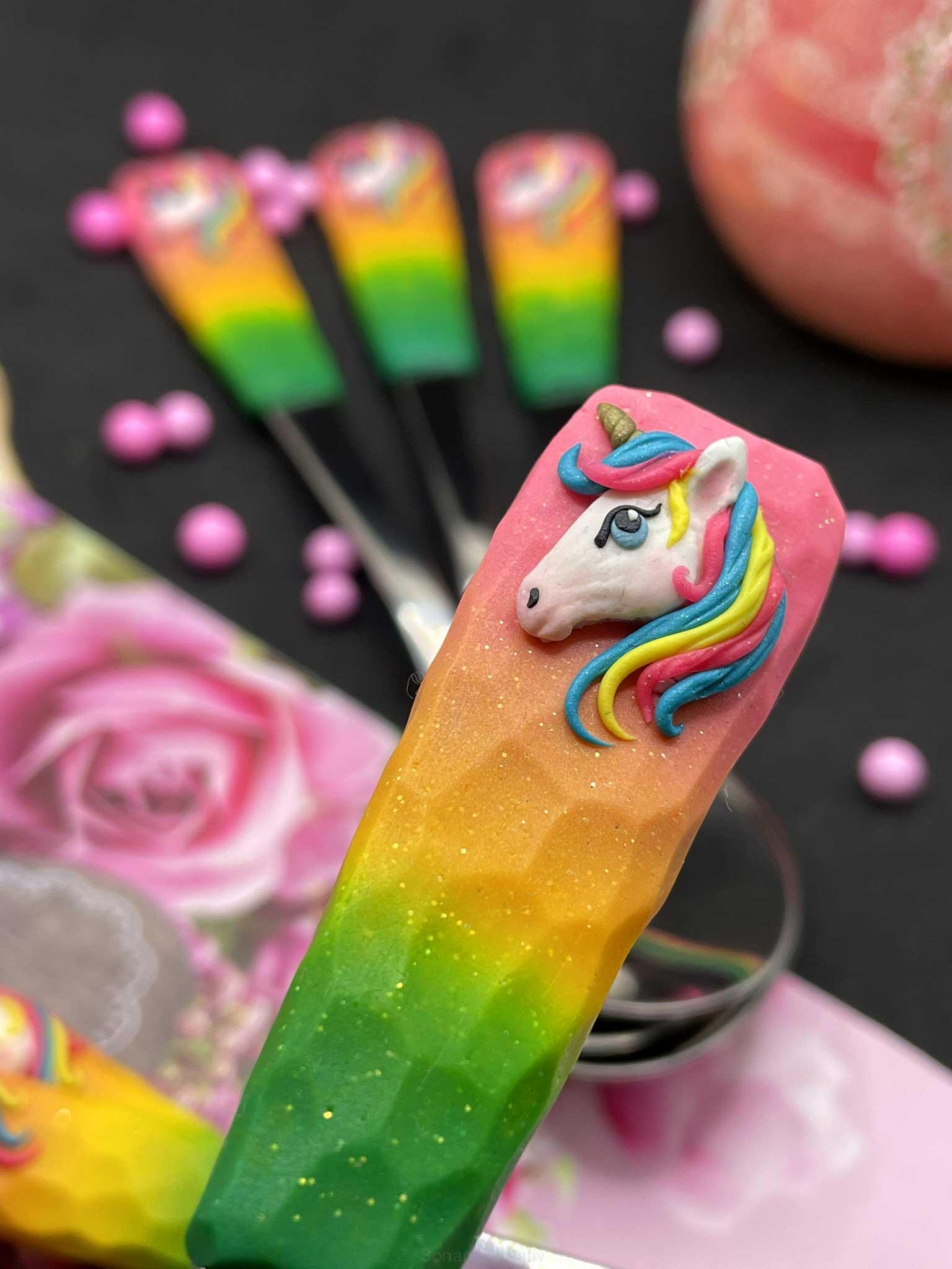 Kouzelná lžíce, která dokáže proměnit každé jídlo v malý svátek fantazie. Rukojeť je zdobená polymerem v jemných odstínech růžové, žluté a zelené a je doplněná ručně vymodelovaným duhovým jednorožcem, který bude dělat společnost všem malým milovníkům pohádek.