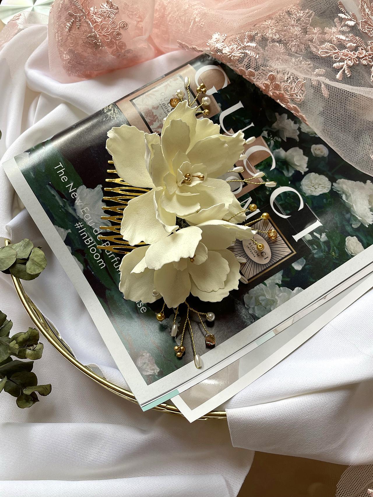Zdobený hřebínek krémové květySkladem 1 ks1 300 Kč/ ks